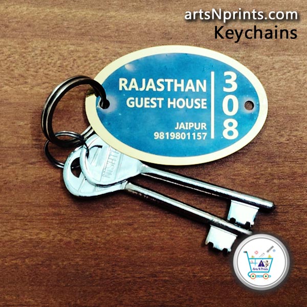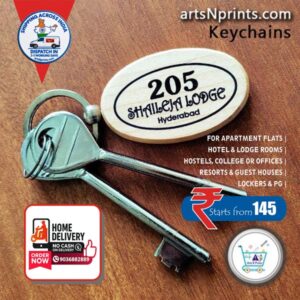Hotels and PGs in Warangal and Secunderabad now have a trusted source for professional keychains. artsNprints.com manufactures high-quality brass, steel, and acrylic keychains with engraving, numbering, or printed branding.